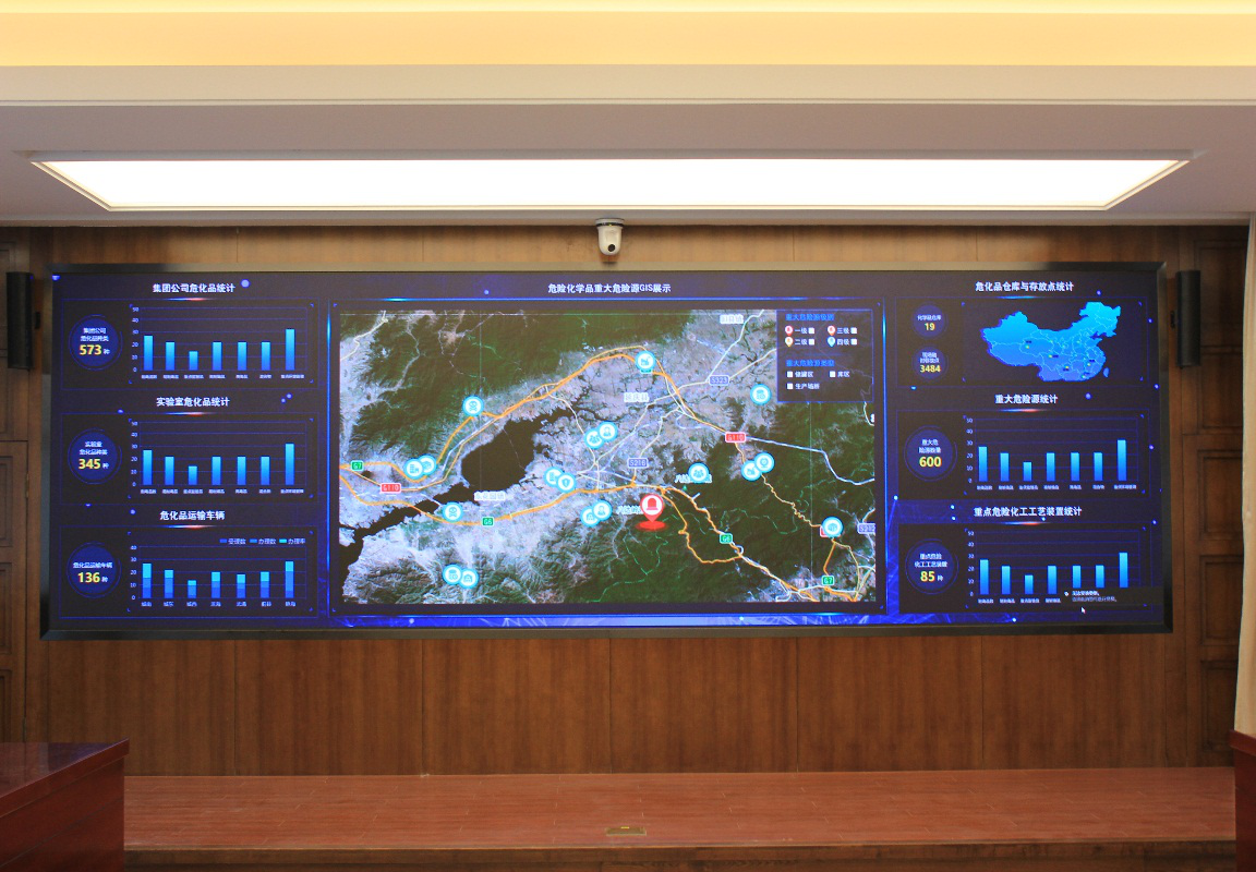 中國石油運輸公司調度中心項目位于北京順義和新疆烏魯木齊兩地,兩地調度中心各建1套1.56mm的LED監控大屏,并重點對兩地視頻會議功能進行升級,由原來模擬視頻會議終端升級為高清終端,實現雙路高清攝像機信號的實時切換及雙流顯示。保證兩地調度中心會場互聯互通,實現視頻交流,通過集團M